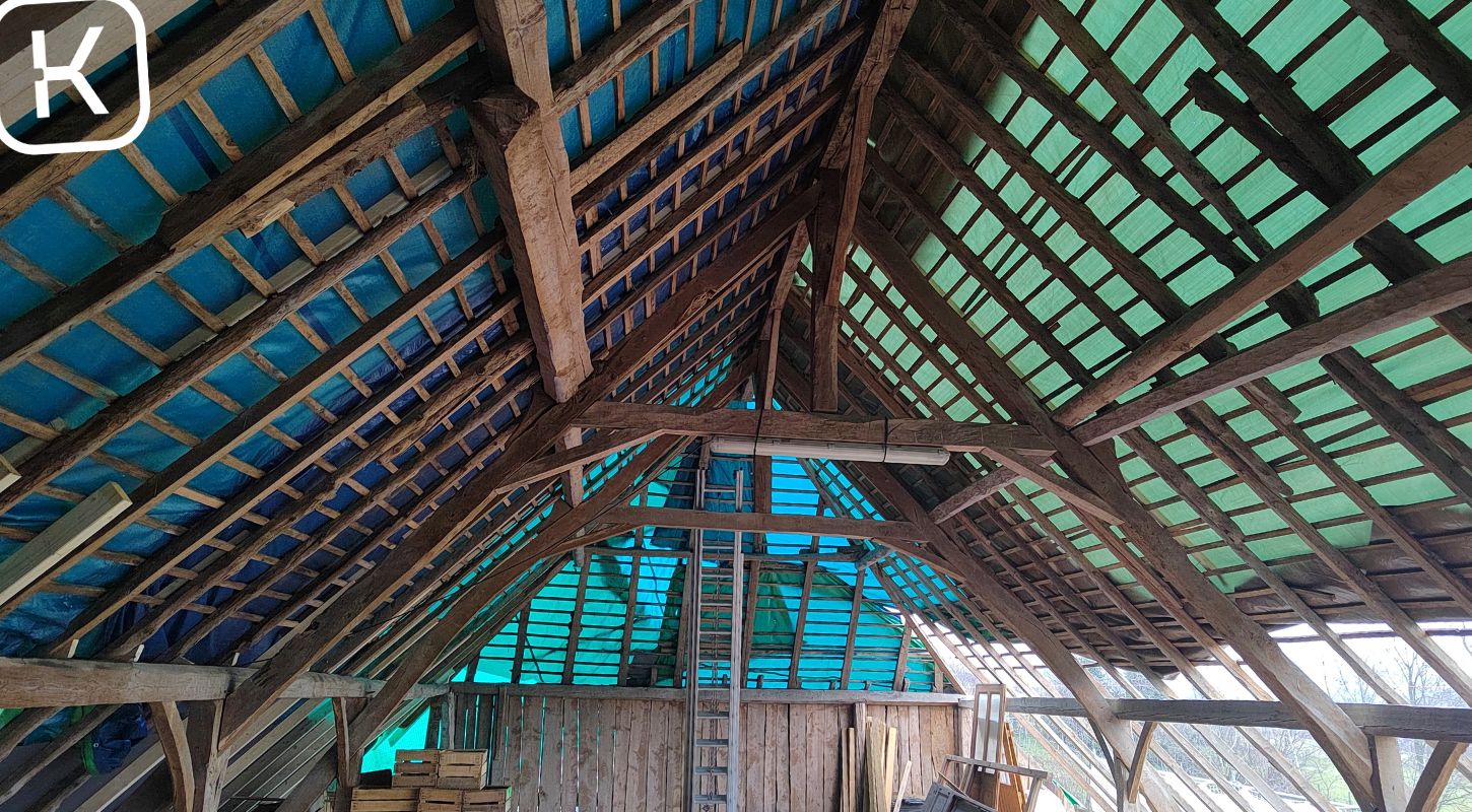 Notre client souhaitait réhabiliter cette immense grange pour en faire ses quartiers. Dans un piètre état, la charpente avait définitivement fait son temps.